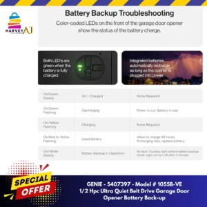 Genie 5407397 1/2 Hpc Ultra Quiet Belt Drive Garage Door Opener Battery Back-Up